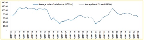 Exhibit 3: Average Indian Crude Basket (US$/bbl) against Average Brent Prices (US$/bbl)