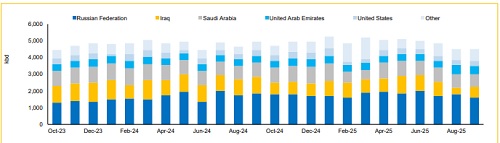 * Saudi Aramco lowered the official selling price of its flagship Arab Light grade for Asian buyers for the month of December 2025. The premium of Arab Light grade has been reduced from USD 2.2/b to USD 1/b against Dubai crude.