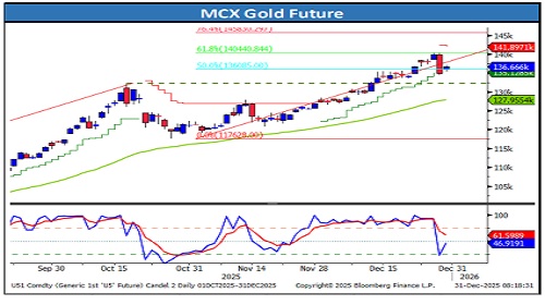 * Intraday Trading Strategy: Sell Gold Mini Jan Fut at 135900-135925 SL 136550 Target 135325/134780
