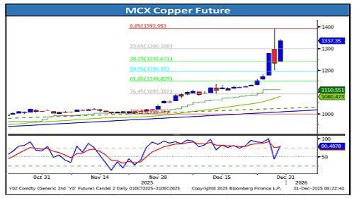 * Intraday Trading Strategy: Sell Copper Jan Fut at 1300-1305 SL 1329.25 Target 1274/1256.8