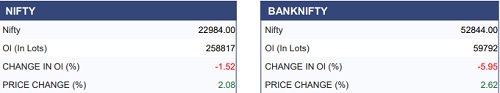 The Nifty index witnessed a breather session amid the ongoing volatility. On the daily chart, the index is hovering near its immediate resistance zone of 23000-23200. A sustained breakout above this range could improve the near-term outlook and trigger an upward move towards the 23,600 level. On the derivatives front, OI data for the March series expiry highlights fresh writing at the 23,000 strike on both call and put sides, indicating a contention zone. Overall, the Nifty is likely to trade with a sideways bias in the near term and a decisive move beyond key levels, determine the next directional move.