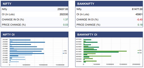 Nifty traded on a volatile note after positive but faced rejection near the 25,600 mark, which drifted lower towards 25,400 and eventually settled at 25,496, indicating range-bound movement of nearly 200 points during the session. On the derivatives front, fresh call writing was observed at the 25,600 strike, while put writing emerged around the 25,400 level, suggesting 25,500 as the immediate tug-of-war zone between bulls and bears. Overall, market sentiment looks sideways. A decisive breakout from the prevailing range is required to decide the next leg of direction. On the downside, the 25,200–25,250 zones are likely to act as the next key support, whereas 25,800 stand as a strong overhead resistance.
