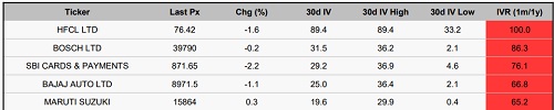 Stocks with High IVR: