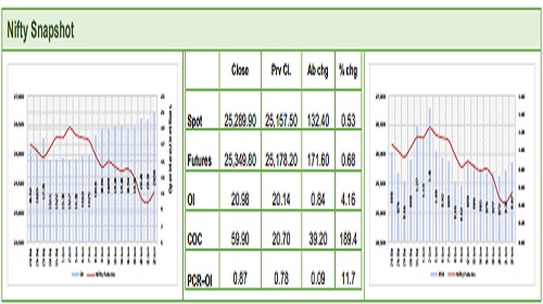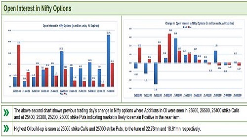 Indian markets closed on a positive note where buying was mainly seen in FMCG, Media, Metal, PSU Banks and Pharmaceuticals. Nifty Jan Futures closed at 25,349.80 (up 171.60 points) at a premium of 59.90 pts to spot.