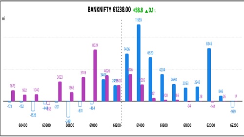 The Nifty put-call ratio (PCR) rose to 1.06 from 0.98 points, while the Bank Nifty PCR fell from 1.09 to 1.02 points.