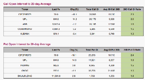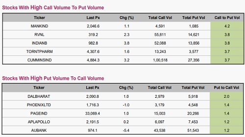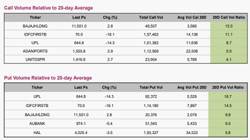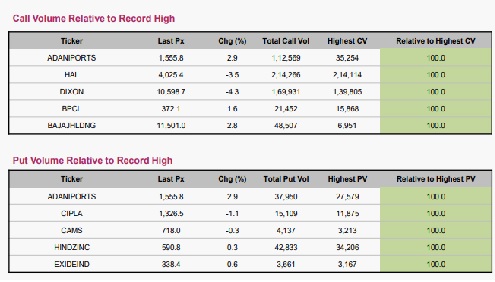 Cummins India and Indian Bank currently exhibit extended bullish momentum with heavily skewed 4:1 call-to-put ratios, a crowded positioning that significantly heightens the risk of sharp profit-taking or a sudden deleveraging pullback. Conversely, while AU Bank and Page Industries have been weighed down by bearish sentiment, emerging seller exhaustion indicates that downward pressure is plateauing, setting the stage for a potential tactical mean-reversion rally. In options positioning, the broader market appears vulnerable to rising volatility as concentrated long bets in UPL and IDFC First Bank the latter recently rattled by fraud disclosures and record-high put concentrations in DLF and Container Corporation suggest a transition into a more reactive and turbulent phase of price discovery. (This data covers only stock options with at least 500 contracts traded on the day for both calls and puts).