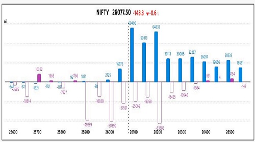Nifty Futures: 26,077.5 (-0.5%), Bank Nifty Futures: 58,869.0 (-0.9%).