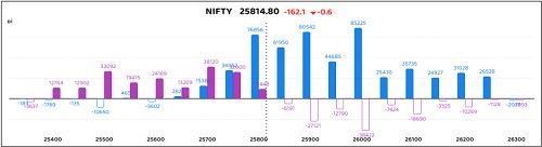 The largest open interest changes (contracts) were seen at the 26,000 Call and the 26,000 Put
