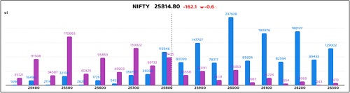For the Nifty, the 26,000 Call and the 25,500 Put had the highest call and put concentration (contracts). For the Bank Nifty, the 58,000 Call and the 57,000 Put saw the most amount of open interest.