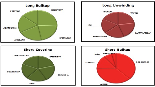 The above second chart shows previous trading day’s change in Nifty options where Liquidations in OI were seen in 26000, 25900, 25800, 25700, 25600 strike Calls and at 25800, 25700, 25600, 25500, 25400, 25300 strike Puts indicating market is likely to remain Range Bound in the near term.