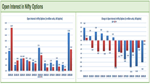 Highest OI build-up is seen at 26000 strike Calls and 25000 strike Puts, to the tune of 12.65mn and 14.37mn respectively.