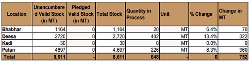 Stock position of Castor Seed in NCDEX approved warehouses