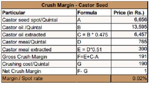 (Castor Seed price = Rs. Per quintal, Lot size = 05 MT)
