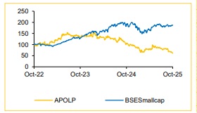 Basis our assumptions of 21% volume CAGR, minor realisation increase, and EBITDA margin improvement of 358bps over FY25-28E, we forecast APOLP EPS to grow at a CAGR of 63.5%. Consol ROCE is expected to reach 18.3% in FY28E vs 6.7% in FY25