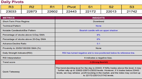 The index opened the week on a negative note and slipped below its previous week low (22471) - ICICI Direct