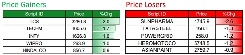Nifty opened on a flat note but buying led the index upwards to end near the high of the day...