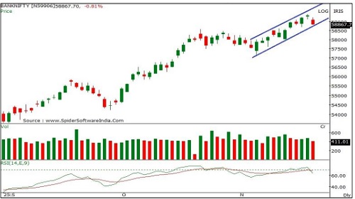 Bank Nifty suffered a more significant setback, ending 480 points lower at 58,868. The index printed a sizable bearish candle with a lower high and lower low compared to the previous session. A close below the prior day's low indicates that further weakness may be imminent.