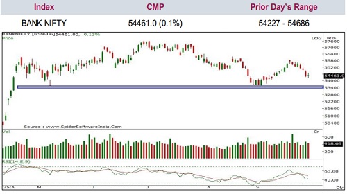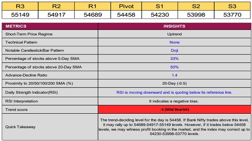 Meanwhile, the Bank Nifty closed at 54,461, up 72 points. The index formed a Doji candlestick on the daily chart, reflecting market indecision over the near-term direction.