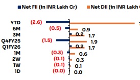 On 1st Jan 2026, US market delivered a negative performance with S&P500 down by -50.74 pts (-0.74%), Dow Jones down by -303.77 pts (-0.63%) and Nasdaq down by -212.71 pts (-0.84%). Gift Nifty grew by 24.5 pts (0.09%) indicating Indian markets will open positively. Advance-Decline ratio on NSE was 3222:2145 and on BSE was 1669:2024 which showed balance in the overall markets.