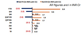 Overnight global action was Positive: On 27 th Oct, U.S. markets were positive with S&P 500 up +83.45 pts (+1.23%), Dow Jones was up by +337.47 pts (+0.71 %) and Nasdaq was up by 463.38 pts (+1.83%). India VIX was up by ~3.3%. GIFT Nifty is trading flat at ~26,062 (+44.00 pts, +0.17%) indicating Indian markets will open positively.