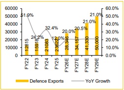 Defence export to expand 20.6% CAGR over FY25-29E (INR Cr)