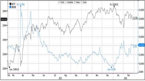 India VIX decreased by 2.08% from 14.45 to 14.15 levels in the February series. It inched higher above 16 levels and created swings throughout the month.