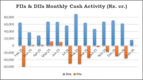 February witnessed a recovery in the broader market despite major events such as the Union Budget and trade deal uncertainties. Sectoral participation improved with most indices ending the month in the green. PSU Banks continued to lead from the front supported by strength in CPSE, Pharma, Energy, Metals, Auto and Financials. However, Nifty IT remained the notable laggard declining over 20% during the period amidst concerns over AI-led disruption across the global markets. Overall, the market tone stayed constructive with buying interest seen at support levels.
