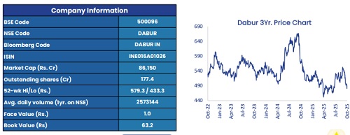 * Internationally, Dabur expects robust performance from MENA, Turkey, and Bangladesh, though operations in Nepal remain subdued due to political unrest. The company’s inventory is now optimised, with correction largely complete, positioning it for sustained growth ahead. Looking forward, softening food inflation, a favourable monsoon, and improving urban and rural demand are expected to drive recovery. With its balanced portfolio, deep rural presence, and GST-led consumption boost, Dabur is well-placed to enhance profitability, strengthen return ratios, and maintain leadership in the Indian FMCG landscape.