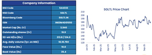 * SGLTL is executing a Rs. 130 crore greenfield expansion over the next 18–24 months to enhance scale and technical capabilities. The upcoming 550,000 sq. ft. facility on 36 acres will feature 100-ton crane capacity and 100mm fabrication thickness, enabling entry into higher-value petrochemical and heavy engineering verticals. Alongside, the company is intensifying automation across existing plants, increasing welding robots from seven to over forty to achieve threefold capacity expansion. The newly commissioned 100,000 sq. ft. Unit 5, currently at 60% utilization will also see further automation to improve efficiency.