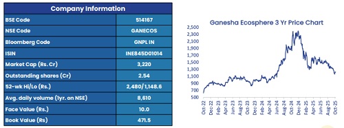 * The recent EPR (Extended Producer Responsibility) norms which mandate company brand owners to compulsorily use recycled material for producing PET bottles will benefit Ganesha as it should enhance the demand of rPET B2B chips because it will mandate bottle manufacturers to use rPET scrap to produce bottles. •Furthermore, early signs of demand recovery are evident in B2B granules segment, with a notable pickup in orders for September and October 2025. Supportive regulations, easing raw material prices, emerging demand momentum, and the successful ramp-up of the South India plant are all expected to strengthen Ganesha’s growth trajectory.