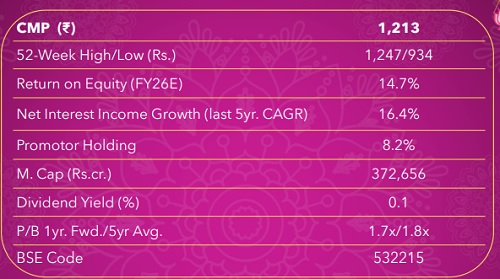 * Among the universal banks, Axis Bank is preferred due to its attractive valuation relative to peers, offering a favourable risk-reward setup.
