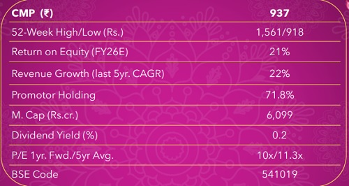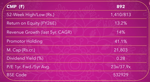 * Earnings are projected to grow at a strong 43% CAGR, driven by improved asset turnover and rising profitability. ROE is expected to reach 27.1% by FY27E, setting the stage for a potential valuation re-rating. At 29x, the stock remains attractively priced, leaving significant upside potential
