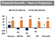 The company reported FY25 net revenue of INR 319 cr and targets INR 450-480 cr in FY26, INR 550-600 cr in FY27 and ~INR 1300 cr by FY30. ARR is expected to grow 5-8% with ~75% occupancy. The current gross debt is INR 100 cr, and ROHL aims for an asset-light model, using FCF selectively for expansion and debt repayment, primarily relying on internal accruals for growth. Over FY25-28E, ROHL’s revenue, EBITDA & net earnings are projected to grow at a CAGR of 24.8%, 26.2% & 23.8%, respectively, reaching INR 621 cr, INR 147 cr & INR 90 cr. Our estimates are lower than management targets as we have taken a conservative approach in our forecast. EBITDA margins are expected to expand by 80bps to 23.7%, while net margins could decline by 34bps to 14.4% due to an increase in lease expenses. Strong operating performance is expected to improve return ratios - RoE & RoIC could improve by 110bps to 21.6% and 660bps to 25.7% by FY28E.