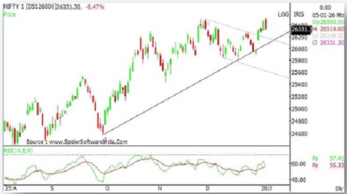 * On technical grounds, Nifty has an immediate Resistance at 26440. If Nifty closes above that, further upside can be expected towards 26570-26640 mark.