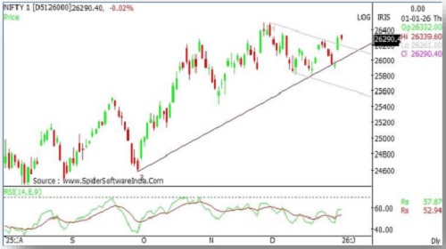 * On technical grounds, Nifty has an immediate Resistance at 26380. If Nifty closes above that, further upside can be expected towards 26440-26500 mark.