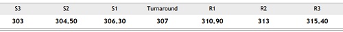 Prices may edge northward in this session. Slip below 307 level could induce mild weakness.