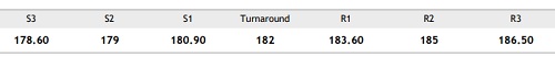Rangebound trades with mild positive bias expected. Slip below 182 could alter this bias.