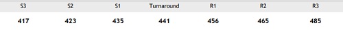Upward momentum may prevail. However, a slip below 441 may initiate corrective dips.