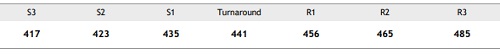 Upward momentum may prevail. However, a slip below 441 may initiate corrective dips.