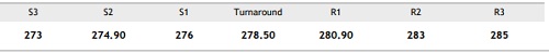 Range bound trades with mild positive bias expected. Slip below 278.50 may initiate downside moves.