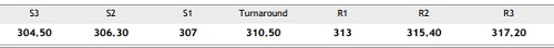 Prices may dge northward in this session. Slip below 310.50 level could induce mild weakness.