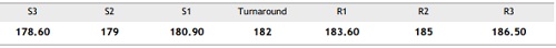 Rangebound trades with mild positive bias expected. Slip below 182 could trigger downside pressure.