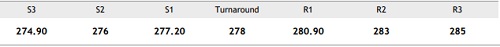Range bound trades with mild positive bias expected. Slip below 278 may initiate downside moves.