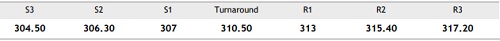 Range bound trades with a mild positive bias expected. Slip below 310.50 level could induce mild weakness.