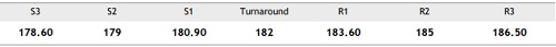 Rangebound trades expected. Slip below 182 could trigger downside pressure.