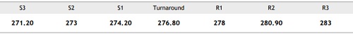 Southward trades expected in this session. Revisiting trades above 276.80 can alter this bias.