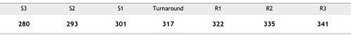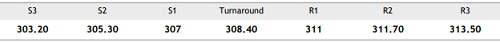 Extended dip below 301 region could induce weakness. Rebound above 317 region could alter this bias.