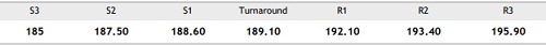 Prices may strengthen with sustained trades above 189.10. Whereas, slip below the same could induce weakness.