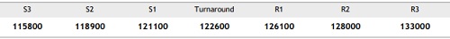 Upward moves expected in this session. Slip below 122600 may initiate corrective fall.