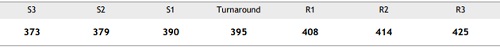 Solid move above 390 could resume upward moves. Voluminous dip below the 379 region may initiate weakness.